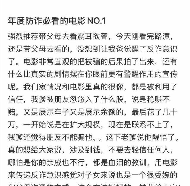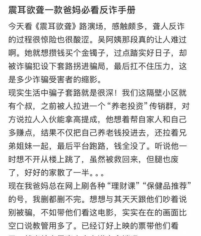 除了演技炸裂,影片的社会议题也引发强烈共鸣。不少观众发现其内核与《我不是药神》有异曲同工之妙,通过主角转变带出弱势群体困境。更让人头皮发麻的是对诈骗集团的刻画,那些量身定制的骗局让不少观众直呼"后怕",甚至有人表示看完就想带父母二刷。